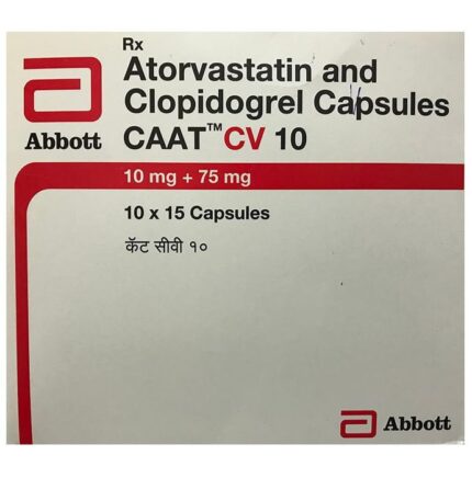 In Heart attack prevention and high cholesterol Caat CV 10 Capsule is a combination medicine that is used to prevent heart attack. It contains Atorvastatin that works by reducing the amount of “bad” cholesterol (LDL) and raising the amount of “good” cholesterol (HDL) in your blood. High levels of cholesterol can cause your blood vessels to narrow (atherosclerosis). Lowering the amount of cholesterol reduces the chances of heart diseases and helps you remain healthier for longer. u003cbr>Besides, it also contains a blood thinner, Clopidogrel, that prevents the formation of blood clots and also prevents the existing ones from growing bigger in size. Take it regularly and make appropriate lifestyle changes (such as eating healthy and staying active) to maximize the effectiveness of this medicine. Keep taking it even if you feel well.