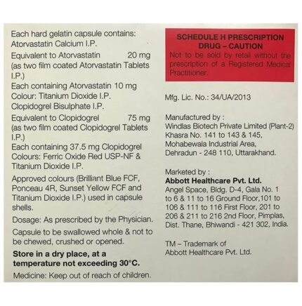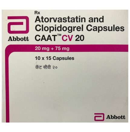 In Heart attack prevention and high cholesterol Caat CV 20 Capsule is a combination medicine that is used to prevent heart attack. It contains Atorvastatin that works by reducing the amount of “bad” cholesterol (LDL) and raising the amount of “good” cholesterol (HDL) in your blood. High levels of cholesterol can cause your blood vessels to narrow (atherosclerosis). Lowering the amount of cholesterol reduces the chances of heart diseases and helps you remain healthier for longer. u003cbr>Besides, it also contains a blood thinner, Clopidogrel, that prevents the formation of blood clots and also prevents the existing ones from growing bigger in size. Take it regularly and make appropriate lifestyle changes (such as eating healthy and staying active) to maximize the effectiveness of this medicine. Keep taking it even if you feel well.