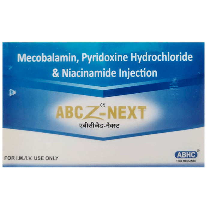 In Treatment of Nutritional deficiencies Abcz-Next Injection contains nutritional supplements that help the body perform various vital functions like the formation of red blood cells and absorption of iron in the body. It also helps your body use fats and carbohydrates for energy and make new protein. This combination contains other vitamins, which help strengthen the immune system, improve metabolism of the body, and aid in the proper functioning of the nervous system. Abcz-Next Injection is given by a doctor or nurse and should not be self-administered. Taking it improves general health and enhances the quality of life.