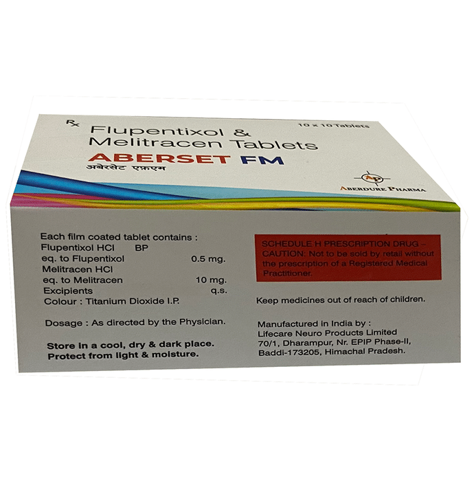 In Treatment of Depression Aberset FM Tablet is a combination medicine that helps in maintaining the balance of certain chemicals in the brain that affect mood and behavior. This improves your mood, relieves anxiety, tension, helps you sleep better and increases your energy levels. Aberset FM Tablet prevents extreme changes in mood and helps you feel less agitated. You may experience fewer episodes of depression and low mood.u003cbr>It can take several weeks for this medicine to work and you may still feel low during this time. It is likely that you will take this medicine for at least six months but possibly much longer. It needs to be taken regularly to work effectively. Do not stop taking it unless your doctor tells you to.