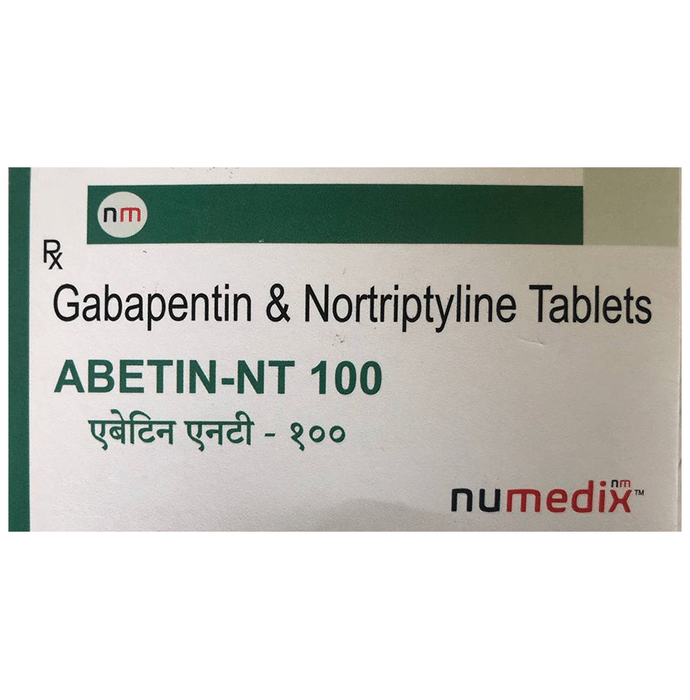 In Treatment of Neuropathic pain Abetin-NT 100 Tablet is a combination medicine used to treat long-lasting (chronic) pain caused by nerve damage due to diabetes, shingles or spinal cord injury. It reduces pain and its associated symptoms such as mood changes, sleep problems, and tiredness. It is thought to work by interfering with pain signals that travel through the damaged nerves and the brain. u003cbr>
