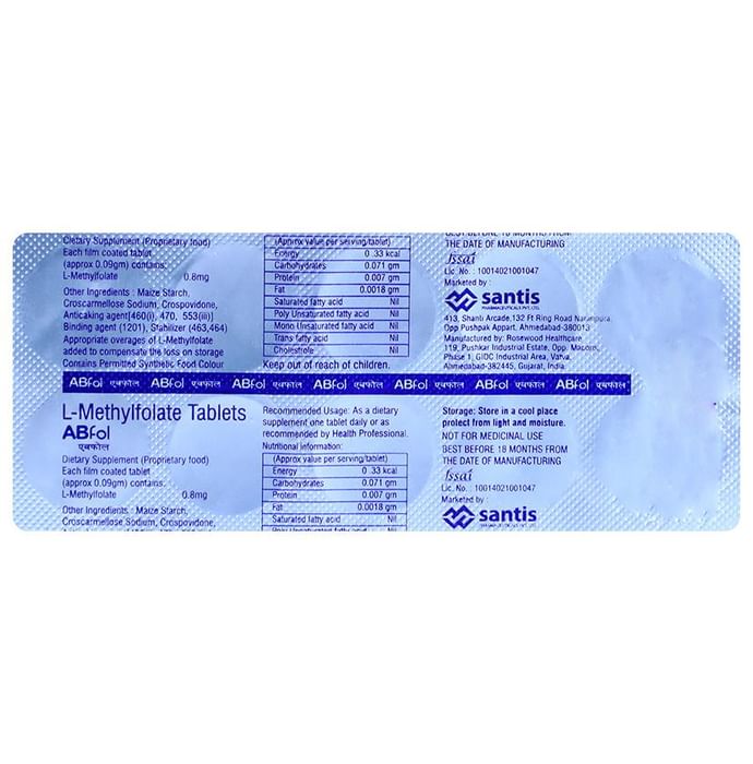 In Treatment of Nutritional deficiencies ABfol Tablet is a supplement of folate which is also known as folic acid. It is used to treat or prevent the low levels of folate in the body. Folate plays an essential role in the production of red blood cells, and its deficiency can lead to anemia. Take it in the exact dose and duration as prescribed by your doctor.