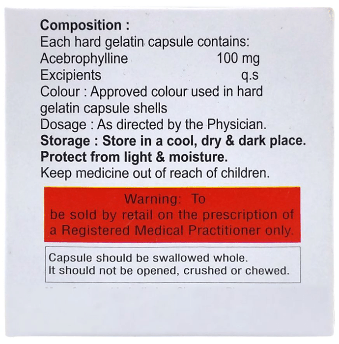 Acebrophylline (100mg):<packagingdetail>:Strip: