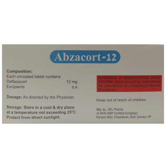 In Treatment of Inflammatory conditions Abzacort 12 Tablet gives relief in inflammatory conditions that affect muscles and joints such as arthritis and ankylosing spondylitis. It also helps manage other inflammatory conditions such as asthma, inflammatory bowel disease, uveitis, ulcerative colitis, and allergies. It works by blocking certain chemicals that cause pain and swelling.