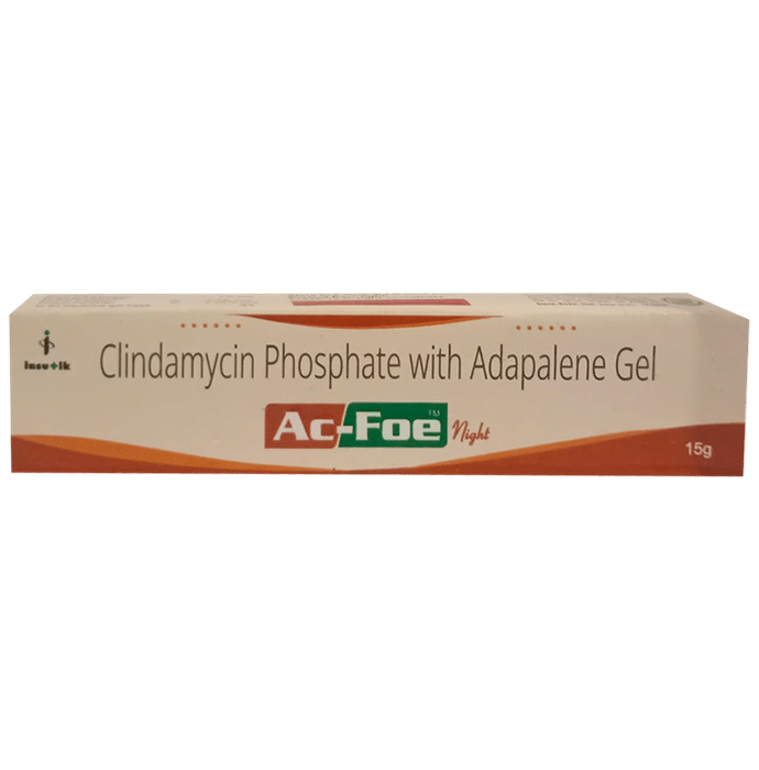 In Treatment of Acne Ac-Foe Night Gel is a combination medicine that helps treat acne (commonly called pimples) by reducing the production of sebum (a natural substance) that causes acne. This kills acne-causing bacteria and prevents spots or pimples from appearing. It usually takes a few weeks to have a noticeable effect so keep using it even if it appears not to be working. Sometimes acne may get worse before it gets better, however, with proper use, your skin will get clearer. The earlier you start using it, the less likely you are to get scars. This medicine will help improve your mood and uplift your confidence as your skin becomes acne-free. It should not be used if you have eczema or sunburned skin.