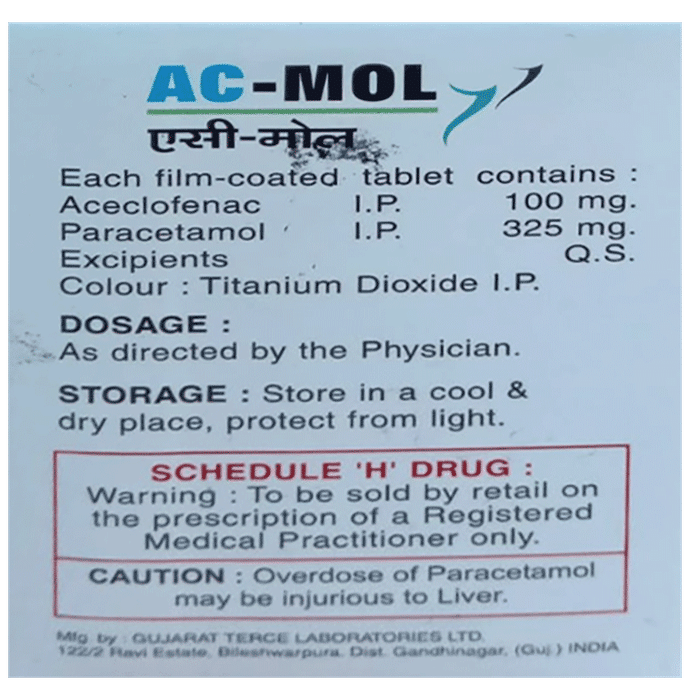 In Pain relief Ac-Mol Tablet is used for short-term relief of pain, inflammation, and swelling in conditions that affect joints and muscles. Some of the conditions in which Ac-Mol Tablet is used are rheumatoid arthritis, osteoarthritis, muscle pain, back pain, toothache, or pain in the ear and throat. Take it as it is prescribed to get the most benefit. Do not take more or longer than needed as that can be dangerous. In general, you should take the lowest dose that works, for the shortest possible time. This will help you to go about your daily activities more easily and have a better, more active, quality of life.
