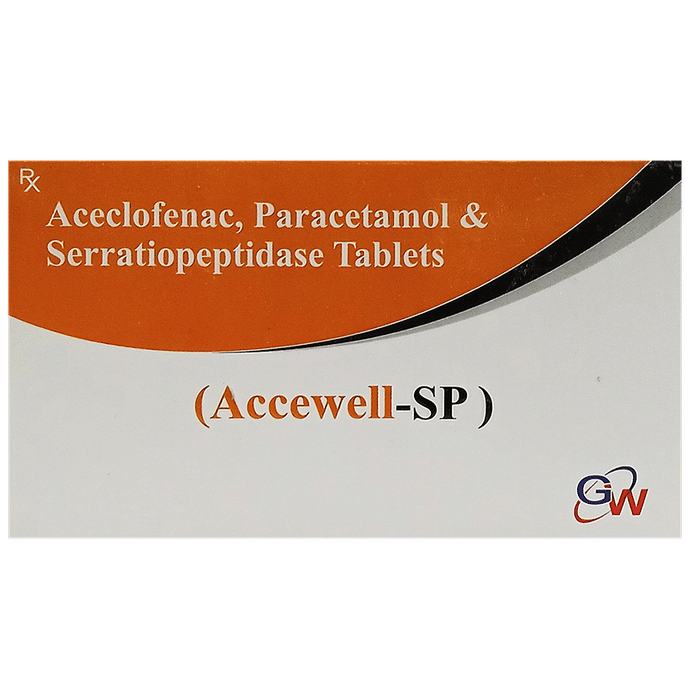 In Pain relief Accewell-SP Tablet is a combination medicine used for short-term relief of pain, inflammation, and swelling in conditions affecting joints and muscles. It works by blocking chemical messengers in the brain that tell us we have pain. It can help relieve pain in conditions like rheumatoid arthritis and osteoarthritis. Along with painkillers, this medicine also contains an active ingredient called Serratiopeptidase, which is an enzyme that promotes the overall healing process and speeds up recovery.u003cbr>u003cbr>Take it as it is prescribed to get the most benefit. Do not take more or longer than needed as that can be dangerous. In general, you should take the lowest dose that works, for the shortest possible time. This will help you to go about your daily activities more easily and have a better, more active, quality of life.
