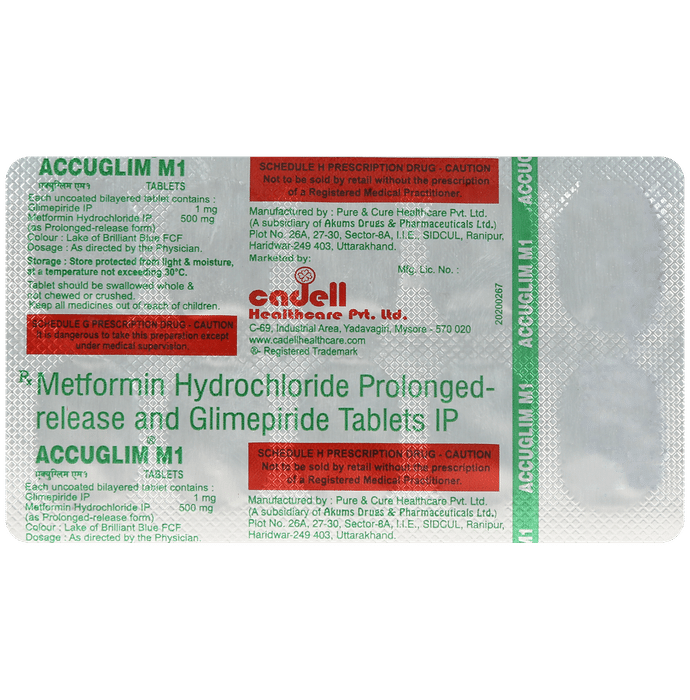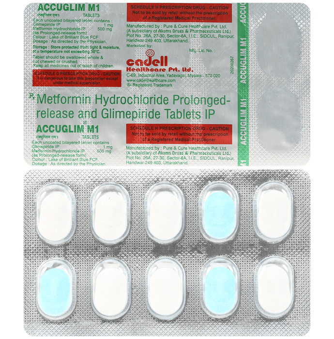 In Treatment of Type 2 diabetes mellitus Accuglim M 1mg/500mg Tablet is a combination medicine that increases the amount of insulin your body produces (in the pancreas). The insulin then works to lower your blood glucose level. It is usually taken once a day. You should keep taking it for as long as it is prescribed.u003cbr>Lowering blood glucose levels is an essential part of managing diabetes. If you can control the level you will reduce the risk of getting any of the serious complications of diabetes such as kidney damage, eye damage, nerve problems, and loss of limbs. Taking this medicine regularly along with proper diet and exercise will help you live a normal, healthy life.