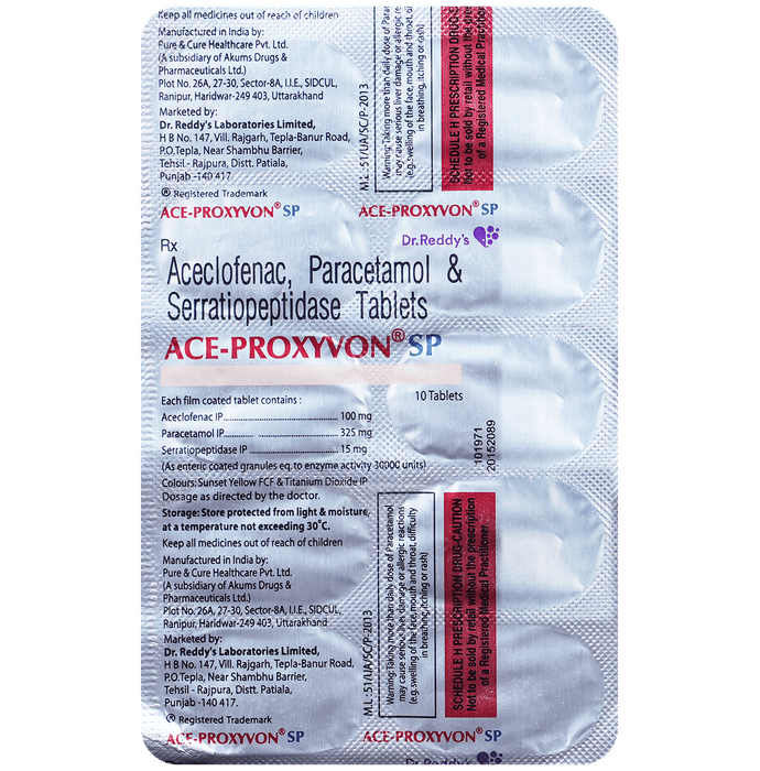 In Treatment of Abdominal pain Ace Proxyvon Spas Tablet effectively relieves sudden muscle spasms or contractions in the stomach and intestine (gut), thereby relaxing the muscles and improving movement of food. It also blocks chemical messengers in the brain that are responsible for pain sensation. This helps to treat abdominal pain (or stomach pain) as well as cramps, bloating and discomfort. Take Ace Proxyvon Spas Tablet as prescribed by the doctor. Eventually, it will help you to go about your daily activities more easily and have a better, more active, quality of life.