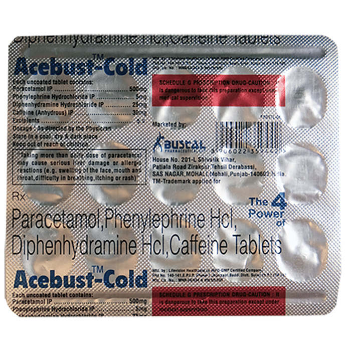 In Treatment of Common cold Acebust-Cold Tablet is a combination of medicines that effectively relieves symptoms of common cold such as blocked nose, runny nose, watery eyes, sneezing, and congestion or stuffiness. It helps to loosen thick mucus, making it easier to cough out. This makes it easier for air to move in and out. It shrinks the blood vessels and provides rapid relief that lasts for several hours.