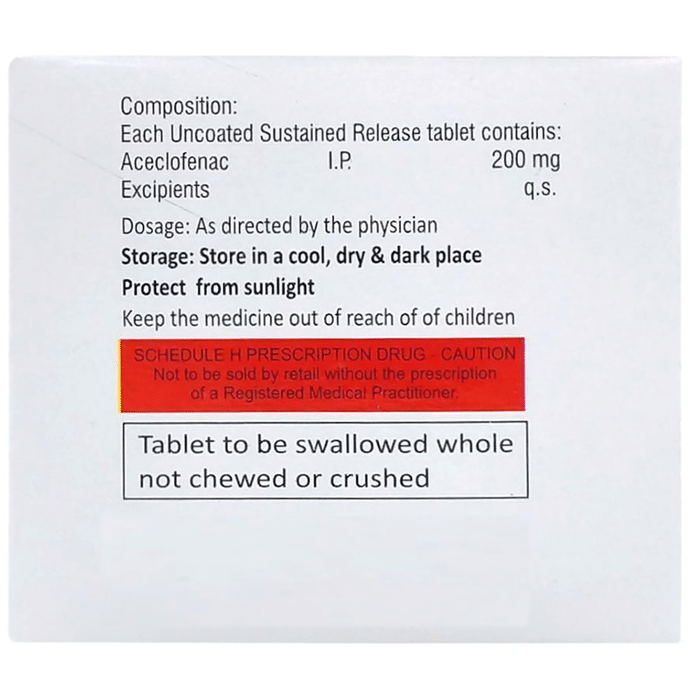 Aceclofenac (200mg):<packagingdetail>:Strip: