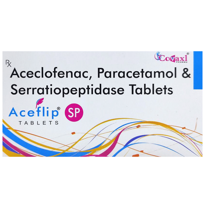 What is Aceflip SP Tablet?::: It is a combination of three medicines: Aceclofenac, Paracetamol, and Serratiopeptidase. This medication helps in relieving pain and inflammation. It works by lowering the levels of chemical substances in the body that cause pain and inflammation.| Is it safe to take Aceflip SP Tablet?::: It is safe to take this medicine for most of the patients. However, in some patients, it may cause unwanted side effects like nausea, vomiting, stomach pain, heartburn, and diarrhea. If you experience any persistent problem due to the medication, inform your doctor as soon as possible.| Can I stop taking Aceflip SP Tablet when my pain is relieved?::: This medicine is usually used for the short term and can be discontinued when your pain is relieved. However, continued taking it if your doctor has advised you to do so.| Can Aceflip SP Tablet cause nausea and vomiting?::: Yes, the use of this medicine can cause nausea and vomiting. In case you experience nausea while taking this medicine, take it with milk, food, or with antacids. Avoid taking fatty or fried foods along with this medication. In case of vomiting, drink plenty of water or other fluids by taking small frequent sips. Talk to your doctor if vomiting persists and you notice signs of dehydration, like dark colored and strong-smelling urine and a low frequency of urination. Do not take any other medicines without speaking to your doctor.| Can Aceflip SP Tablet cause dizziness?::: Yes, the use of this medicine can cause dizziness (feeling faint, weak, unsteady or lightheaded) in some patients. If you feel dizzy or lightheaded, it is better to rest for sometime and resume once you feel better.| Are there any specific contraindications associated with taking Aceflip SP Tablet?::: The use of this medicine is considered harmful for patients with known allergy to any of the components or excipients of this medicine or in patients with known allergy to other painkillers (NSAIDs). Its use should preferably be avoided in patients with a history of stomach ulcers or in patients with active, recurrent stomach ulcers/bleeding. It should also be avoided in patients with a history of heart failure, high blood pressure, and liver or kidney disease.| Can I take Aceflip SP Tablet with vitamin B-complex?::: Yes, this medicine can be taken with vitamin B-complex preparations. While it helps to relieve pain, vitamin B-complex can help to correct the vitamin deficiency that might be causing your symptoms.| Can the use of Aceflip SP Tablet cause damage to kidneys?::: Yes, long-term use of this medicine can cause damage to the kidneys. Normal kidneys produce a chemical called prostaglandins that protect them from damage. The use of painkillers lowers the levels of prostaglandins in the body, which leads to kidney damage on long-term use. The use of painkillers is not recommended in patients with underlying kidney disease.| Can I take a higher dose of Aceflip SP Tablet than recommended?::: No, taking a higher than recommended dose can lead to increased chances of side effects. If you are experiencing increased severity of pain or the pain is not relieved by the recommended doses, please consult your doctor for re-evaluation.| What are the instructions for storage and disposal of Aceflip SP Tablet?::: Keep this medicine in the packet or the container it came in, tightly closed. Store it according to the instructions mentioned on the pack or label. Dispose of the unused medicine. Make sure it is not consumed by pets, children and other people.: