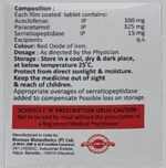 Aceclofenac (100mg) + Paracetamol (325mg) + Serratiopeptidase (15mg):<packagingdetail>:Strip: