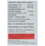 Aceclofenac (100mg) + Paracetamol (325mg) + Serratiopeptidase (15mg):<packagingdetail>:Strip: