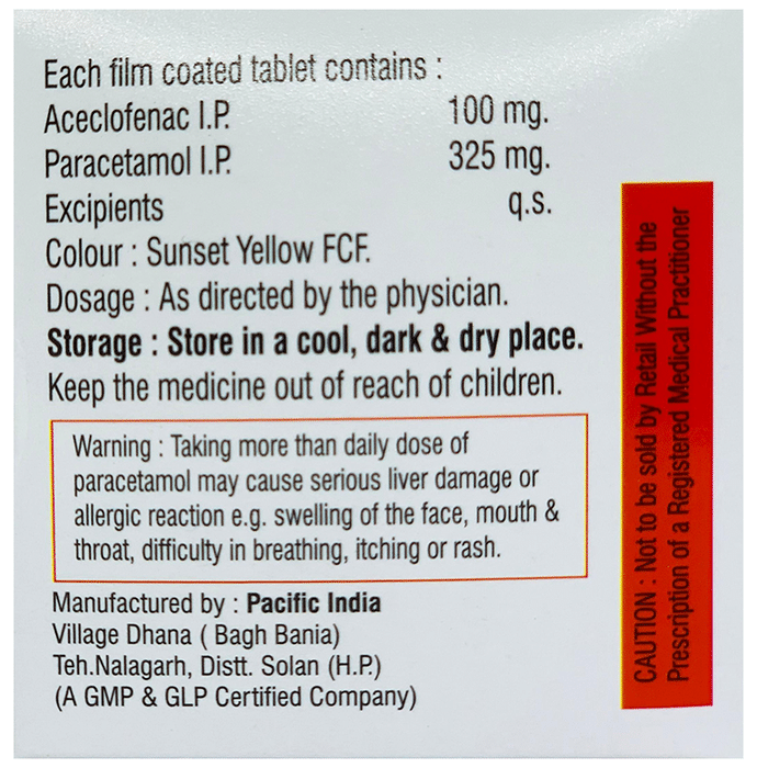 Aceclofenac (100mg) + Paracetamol (325mg):<packagingdetail>:Strip: