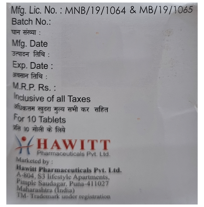 Prescription Required:Hawitt Pharmaceuticals Pvt Ltd:<medicine_type>:
