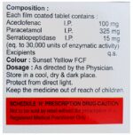 Aceclofenac (100mg) + Paracetamol (325mg) + Serratiopeptidase (15mg):<packagingdetail>:Strip:
