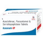 What is Aceomark-SP Tablet?::: It is a combination of three medicines: Aceclofenac, Paracetamol, and Serratiopeptidase. This medication helps in relieving pain and inflammation. It works by lowering the levels of chemical substances in the body that cause pain and inflammation.| Is it safe to take Aceomark-SP Tablet?::: It is safe to take this medicine for most of the patients. However, in some patients, it may cause unwanted side effects like nausea, vomiting, stomach pain, heartburn, and diarrhea. If you experience any persistent problem due to the medication, inform your doctor as soon as possible.| Can I stop taking Aceomark-SP Tablet when my pain is relieved?::: This medicine is usually used for the short term and can be discontinued when your pain is relieved. However, continued taking it if your doctor has advised you to do so.| Can Aceomark-SP Tablet cause nausea and vomiting?::: Yes, the use of this medicine can cause nausea and vomiting. In case you experience nausea while taking this medicine, take it with milk, food, or with antacids. Avoid taking fatty or fried foods along with this medication. In case of vomiting, drink plenty of water or other fluids by taking small frequent sips. Talk to your doctor if vomiting persists and you notice signs of dehydration, like dark colored and strong-smelling urine and a low frequency of urination. Do not take any other medicines without speaking to your doctor.| Can Aceomark-SP Tablet cause dizziness?::: Yes, the use of this medicine can cause dizziness (feeling faint, weak, unsteady or lightheaded) in some patients. If you feel dizzy or lightheaded, it is better to rest for sometime and resume once you feel better.| Are there any specific contraindications associated with taking Aceomark-SP Tablet?::: The use of this medicine is considered harmful for patients with known allergy to any of the components or excipients of this medicine or in patients with known allergy to other painkillers (NSAIDs). Its use should preferably be avoided in patients with a history of stomach ulcers or in patients with active, recurrent stomach ulcers/bleeding. It should also be avoided in patients with a history of heart failure, high blood pressure, and liver or kidney disease.| Can I take Aceomark-SP Tablet with vitamin B-complex?::: Yes, this medicine can be taken with vitamin B-complex preparations. While it helps to relieve pain, vitamin B-complex can help to correct the vitamin deficiency that might be causing your symptoms.| Can the use of Aceomark-SP Tablet cause damage to kidneys?::: Yes, long-term use of this medicine can cause damage to the kidneys. Normal kidneys produce a chemical called prostaglandins that protect them from damage. The use of painkillers lowers the levels of prostaglandins in the body, which leads to kidney damage on long-term use. The use of painkillers is not recommended in patients with underlying kidney disease.| Can I take a higher dose of Aceomark-SP Tablet than recommended?::: No, taking a higher than recommended dose can lead to increased chances of side effects. If you are experiencing increased severity of pain or the pain is not relieved by the recommended doses, please consult your doctor for re-evaluation.| What are the instructions for storage and disposal of Aceomark-SP Tablet?::: Keep this medicine in the packet or the container it came in, tightly closed. Store it according to the instructions mentioned on the pack or label. Dispose of the unused medicine. Make sure it is not consumed by pets, children and other people.: