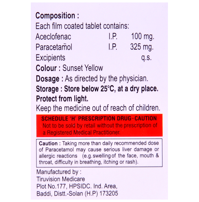 Aceclofenac (100mg) + Paracetamol (325mg):<packagingdetail>:Strip: