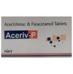 What is Aceriv-P Tablet?::: Aceriv-P Tablet is a combination of two medicines: Aceclofenac and Paracetamol. This medication helps in relieving pain and inflammation. It works by lowering the levels of chemical substances in the body that cause pain and inflammation.| Is it safe to use Aceriv-P Tablet?::: Aceriv-P Tablet is safe for most of the patients. However, in some patients it may cause some unwanted common side effects like nausea, vomiting, stomach pain, heartburn, diarrhea and other uncommon and rare side effects.| Can I stop taking Aceriv-P Tablet when my pain is relieved?::: If you are using the medication for a condition associated with long-term pain then Aceriv-P Tablet should be continued for as long as advised by your physician. It can be discontinued if you are using it for short-term pain relief.| Can the use of Aceriv-P Tablet cause nausea and vomiting?::: Yes, the use of Aceriv-P Tablet can cause nausea and vomiting. Taking it with milk, food or with antacids can prevent nausea. Avoid taking fatty or fried foods along with this medication. In case of vomiting drink plenty of water or other fluids by taking small frequent sips. Talk to your doctor if vomiting persists and you notice signs of dehydration, like dark colored and strong-smelling urine and a low frequency of urination. Do not take any other medicine without speaking to your doctor.| Can the use of Aceriv-P Tablet cause dizziness?::: Yes, the use of Aceriv-P Tablet can cause dizziness (feeling faint, weak, unsteady or lightheaded) in some patients. If you feel dizzy or lightheaded, it is better to rest for sometime and resume once you feel better.| Are there any specific contraindications associated with the use of Aceriv-P Tablet?::: The use of Aceriv-P Tablet is considered to be harmful for patients with known allergy to any of the components or excipients of this medicine or in patients with known allergy to other painkillers (NSAIDs). It should preferably be avoided in patients with a history of stomach ulcers or in patients with active, recurrent stomach ulcer/bleeding. It should also be avoided in patients with a history of heart failure, high blood pressure, and liver or kidney disease.| Can Aceriv-P Tablet be taken with vitamin B-complex?::: Yes, Aceriv-P Tablet can be taken with vitamin B-complex preparations. While Aceriv-P Tablet helps to relieve pain, vitamin B-complex can help to correct the vitamin deficiency that might be causing the underlying painful condition.| Is Aceriv-P Tablet helpful in relieving stomach pain?::: No, Aceriv-P Tablet preferably should not be taken for stomach pain without consulting a physician. This drug can increase stomach acid secretion which may aggravate an unknown underlying condition.| Can the use of Aceriv-P Tablet cause damage to kidneys?::: Yes, the long-term use of Aceriv-P Tablet can cause damage to the kidneys. Normal kidneys produce a chemical messenger called prostaglandins that protects them from damage. Use of painkillers lowers the levels of prostaglandins in the body which leads to kidney damage on long-term use. Use of painkillers is not recommended to patients with underlying kidney disease.| Is it safe to take a higher dose of Aceriv-P Tablet than recommended?::: No, taking higher than the recommended dose of Aceriv-P Tablet can lead to increased chances of side effects like nausea, vomiting, heartburn, indigestion, diarrhea and can also damage your kidneys on long-term use. If you are experiencing increased severity of pain or if the pain is not relieved by the recommended doses of this medicine, please consult your doctor for re-evaluation.| What are the instructions for storage and disposal of Aceriv-P Tablet?::: Keep this medicine in the container or the pack it came in, tightly closed. Store it according to the instructions mentioned on the pack or label. Dispose of the unused medicine. Make sure it is not consumed by pets, children and other people.| How long does it take for Aceriv-P Tablet to show results?::: The effect of Aceriv-P Tablet can be seen within 1.5 to 3 hours of oral administration of the medicine and the time taken to show the desired effects may vary with every individual patient.| What is the dosage of Aceriv-P Tablet?::: You may take one tablet of Aceriv-P Tablet twice daily or as prescribed by your doctor. Always follow your doctor’s instructions while taking this medicine.| Can I take Aceriv-P Tablet along with other painkiller tablets?::: No, it is not recommended to take Aceriv-P Tablet with other painkiller medicines without consulting your doctor since it may cause unwanted side effects like stomach pain or ulcers.| Can Aceriv-P Tablet be given to children?::: No, Aceriv-P Tablet is not recommended for use in children under the age of 18 years.: