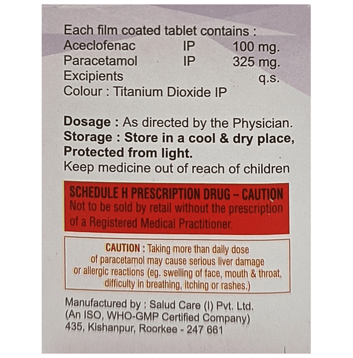 Aceclofenac (100mg) + Paracetamol (325mg):<packagingdetail>:Strip: