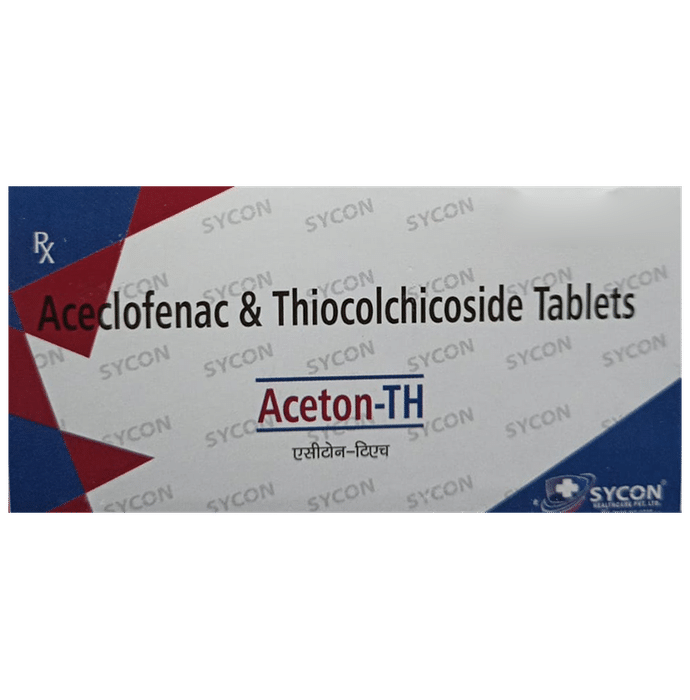 In Treatment of Pain due to muscle spasm Aceton-TH Tablet is a combination medicine that contains a painkiller as well as a muscle relaxant. It is used to relieve pain, inflammation, and swelling in conditions that affect muscles. Also, it effectively relieves muscle stiffness or spasm, thereby improving muscle movement. It works by blocking chemical messengers in the brain that tell us we have pain.u003cbr>u003cbr>Take it as it is prescribed to get the most benefit. Do not take more or for a longer duration than needed as that can be dangerous. In general, you should take the lowest dose that works, for the shortest possible time. This will help you to go about your daily activities more easily and have a better, more active, quality of life.