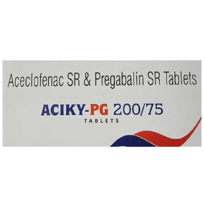 Aciky-PG 200/75 Tablet SR is a pain-relieving medicine. It is used in the treatment of neuropathic pain. It calms the damaged or overactive nerves by acting on the brain, thereby decreasing the sensation of pain. This way it improves your mood and reduces tiredness that can be caused by the pain. Aciky-PG 200/75 Tablet SR should be taken with food. This will prevent you from getting an upset stomach. You should take it regularly as advised by your doctor. Your doctor may change the dose and time between doses according to your pain level and your needs. Do not take more or use it for longer duration than recommended by your doctor.Some of the common side effects of this medicine include nausea, vomiting, indigestion, stomach pain, diarrhea, loss of appetite, and heartburn. If any of these side effects bother you or do not go away with time, you should let your doctor know. Your doctor may help you with ways to reduce or prevent these side effects by prescribing an alternative medicine or adjusting the dose.The medicine may not be suitable for everybody. Before taking it, let your doctor know if you have any problems with your heart, kidneys, liver, or have stomach ulcers. To make sure it is safe for you, let your doctor know about all the other medicines you are taking. Pregnant and breastfeeding mothers should first consult their doctors before using this medicine.