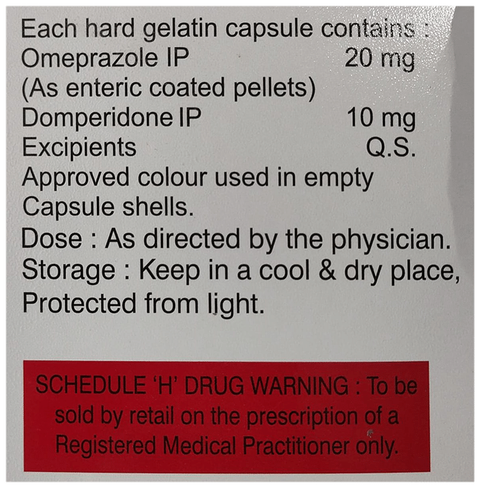 Domperidone (10mg) + Omeprazole (20mg):<packagingdetail>:Strip: