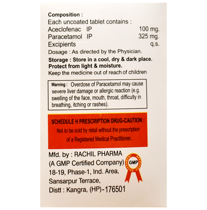 Aceclofenac (100mg) + Paracetamol (325mg):<packagingdetail>:Strip: