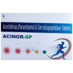 What is Acinor-SP Tablet?::: It is a combination of three medicines: Aceclofenac, Paracetamol, and Serratiopeptidase. This medication helps in relieving pain and inflammation. It works by lowering the levels of chemical substances in the body that cause pain and inflammation.| Is it safe to take Acinor-SP Tablet?::: It is safe to take this medicine for most of the patients. However, in some patients, it may cause unwanted side effects like nausea, vomiting, stomach pain, heartburn, and diarrhea. If you experience any persistent problem due to the medication, inform your doctor as soon as possible.| Can I stop taking Acinor-SP Tablet when my pain is relieved?::: This medicine is usually used for the short term and can be discontinued when your pain is relieved. However, continued taking it if your doctor has advised you to do so.| Can Acinor-SP Tablet cause nausea and vomiting?::: Yes, the use of this medicine can cause nausea and vomiting. In case you experience nausea while taking this medicine, take it with milk, food, or with antacids. Avoid taking fatty or fried foods along with this medication. In case of vomiting, drink plenty of water or other fluids by taking small frequent sips. Talk to your doctor if vomiting persists and you notice signs of dehydration, like dark colored and strong-smelling urine and a low frequency of urination. Do not take any other medicines without speaking to your doctor.| Can Acinor-SP Tablet cause dizziness?::: Yes, the use of this medicine can cause dizziness (feeling faint, weak, unsteady or lightheaded) in some patients. If you feel dizzy or lightheaded, it is better to rest for sometime and resume once you feel better.| Are there any specific contraindications associated with taking Acinor-SP Tablet?::: The use of this medicine is considered harmful for patients with known allergy to any of the components or excipients of this medicine or in patients with known allergy to other painkillers (NSAIDs). Its use should preferably be avoided in patients with a history of stomach ulcers or in patients with active, recurrent stomach ulcers/bleeding. It should also be avoided in patients with a history of heart failure, high blood pressure, and liver or kidney disease.| Can I take Acinor-SP Tablet with vitamin B-complex?::: Yes, this medicine can be taken with vitamin B-complex preparations. While it helps to relieve pain, vitamin B-complex can help to correct the vitamin deficiency that might be causing your symptoms.| Can the use of Acinor-SP Tablet cause damage to kidneys?::: Yes, long-term use of this medicine can cause damage to the kidneys. Normal kidneys produce a chemical called prostaglandins that protect them from damage. The use of painkillers lowers the levels of prostaglandins in the body, which leads to kidney damage on long-term use. The use of painkillers is not recommended in patients with underlying kidney disease.| Can I take a higher dose of Acinor-SP Tablet than recommended?::: No, taking a higher than recommended dose can lead to increased chances of side effects. If you are experiencing increased severity of pain or the pain is not relieved by the recommended doses, please consult your doctor for re-evaluation.| What are the instructions for storage and disposal of Acinor-SP Tablet?::: Keep this medicine in the packet or the container it came in, tightly closed. Store it according to the instructions mentioned on the pack or label. Dispose of the unused medicine. Make sure it is not consumed by pets, children and other people.: