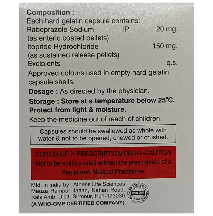 Rabeprazole (20mg) + Itopride (150mg):<packagingdetail>:Strip: