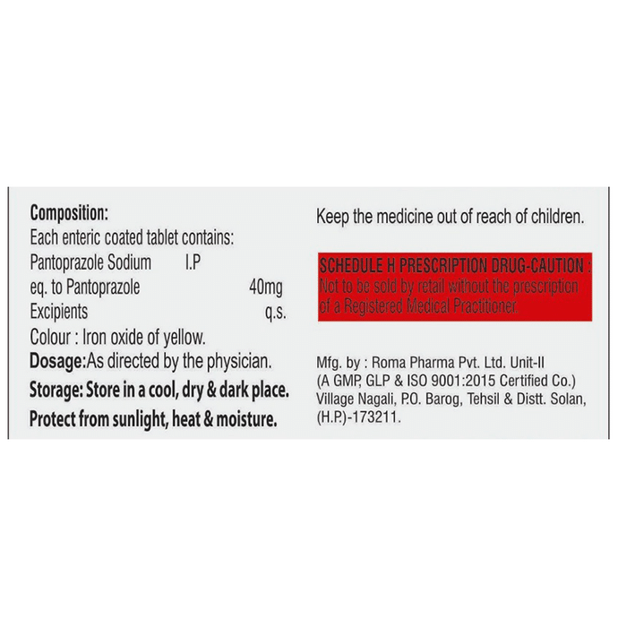 Pantoprazole (40mg):<packagingdetail>:Strip: