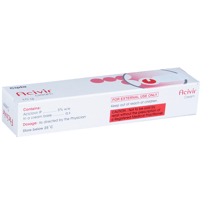 Is Acivir Cream effective?::: Acivir Cream is effective if used in the dose and duration advised by your doctor. Do not stop taking it even if you see improvement in your condition. If you stop using Acivir Cream too early, the symptoms may return or worsen.| How to use Acivir Cream?::: Before using Acivir Cream, clean and dry the affected area. Gently and thoroughly massage it into the skin. Be careful not to get the medication in your eyes or mouth. If Acivir Cream gets in your eyes accidentally, wash with plenty of water and call your doctor if your eyes are irritated.| What precautions do I need to take while using Acivir Cream?::: Be careful not to get Acivir Cream into your eyes or mouth. If you happen to get it in your eyes, rinse off with plenty of water immediately and contact your doctor. You must not use Acivir Cream if you are allergic to it or any of its ingredients. Tell your doctor if you notice any allergic reaction while using it for the first time. Inform your doctor if you are taking any medicines regularly, to prevent any allergic reaction with other medicines. Do not cover the area being treated with Acivir Cream with a bandage, as this may increase absorption of this medicine and increase the side effects. Do not use more than what is recommended to relieve your symptoms faster. Using more than what is advised will only increase the side effects. Let your doctor know if you are planning to conceive. Pregnant and breastfeeding mothers should use Acivir Cream only if prescribed by the doctor.| What should I do if I forget to use Acivir Cream?::: If you forget to use Acivir Cream, do not worry and continue using Acivir Cream as soon as you remember. However, if you are not sure and have any other doubts, please consult your doctor.| Is Acivir Cream safe?::: Acivir Cream is safe if used in the dose and duration advised by your doctor. Use it exactly as directed and do not skip any dose. Follow your doctor’s instructions carefully and let your doctor know if any of the side effects bother you.: