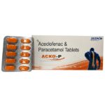 What is Acko-P Tablet?::: Acko-P Tablet is a combination of two medicines: Aceclofenac and Paracetamol. This medication helps in relieving pain and inflammation. It works by lowering the levels of chemical substances in the body that cause pain and inflammation.| Is it safe to use Acko-P Tablet?::: Acko-P Tablet is safe for most of the patients. However, in some patients it may cause some unwanted common side effects like nausea, vomiting, stomach pain, heartburn, diarrhea and other uncommon and rare side effects.| Can I stop taking Acko-P Tablet when my pain is relieved?::: If you are using the medication for a condition associated with long-term pain then Acko-P Tablet should be continued for as long as advised by your physician. It can be discontinued if you are using it for short-term pain relief.| Can the use of Acko-P Tablet cause nausea and vomiting?::: Yes, the use of Acko-P Tablet can cause nausea and vomiting. Taking it with milk, food or with antacids can prevent nausea. Avoid taking fatty or fried foods along with this medication. In case of vomiting drink plenty of water or other fluids by taking small frequent sips. Talk to your doctor if vomiting persists and you notice signs of dehydration, like dark colored and strong-smelling urine and a low frequency of urination. Do not take any other medicine without speaking to your doctor.| Can the use of Acko-P Tablet cause dizziness?::: Yes, the use of Acko-P Tablet can cause dizziness (feeling faint, weak, unsteady or lightheaded) in some patients. If you feel dizzy or lightheaded, it is better to rest for sometime and resume once you feel better.| Are there any specific contraindications associated with the use of Acko-P Tablet?::: The use of Acko-P Tablet is considered to be harmful for patients with known allergy to any of the components or excipients of this medicine or in patients with known allergy to other painkillers (NSAIDs). It should preferably be avoided in patients with a history of stomach ulcers or in patients with active, recurrent stomach ulcer/bleeding. It should also be avoided in patients with a history of heart failure, high blood pressure, and liver or kidney disease.| Can Acko-P Tablet be taken with vitamin B-complex?::: Yes, Acko-P Tablet can be taken with vitamin B-complex preparations. While Acko-P Tablet helps to relieve pain, vitamin B-complex can help to correct the vitamin deficiency that might be causing the underlying painful condition.| Is Acko-P Tablet helpful in relieving stomach pain?::: No, Acko-P Tablet preferably should not be taken for stomach pain without consulting a physician. This drug can increase stomach acid secretion which may aggravate an unknown underlying condition.| Can the use of Acko-P Tablet cause damage to kidneys?::: Yes, the long-term use of Acko-P Tablet can cause damage to the kidneys. Normal kidneys produce a chemical messenger called prostaglandins that protects them from damage. Use of painkillers lowers the levels of prostaglandins in the body which leads to kidney damage on long-term use. Use of painkillers is not recommended to patients with underlying kidney disease.| Is it safe to take a higher dose of Acko-P Tablet than recommended?::: No, taking higher than the recommended dose of Acko-P Tablet can lead to increased chances of side effects like nausea, vomiting, heartburn, indigestion, diarrhea and can also damage your kidneys on long-term use. If you are experiencing increased severity of pain or if the pain is not relieved by the recommended doses of this medicine, please consult your doctor for re-evaluation.| What are the instructions for storage and disposal of Acko-P Tablet?::: Keep this medicine in the container or the pack it came in, tightly closed. Store it according to the instructions mentioned on the pack or label. Dispose of the unused medicine. Make sure it is not consumed by pets, children and other people.| How long does it take for Acko-P Tablet to show results?::: The effect of Acko-P Tablet can be seen within 1.5 to 3 hours of oral administration of the medicine and the time taken to show the desired effects may vary with every individual patient.| What is the dosage of Acko-P Tablet?::: You may take one tablet of Acko-P Tablet twice daily or as prescribed by your doctor. Always follow your doctor’s instructions while taking this medicine.| Can I take Acko-P Tablet along with other painkiller tablets?::: No, it is not recommended to take Acko-P Tablet with other painkiller medicines without consulting your doctor since it may cause unwanted side effects like stomach pain or ulcers.| Can Acko-P Tablet be given to children?::: No, Acko-P Tablet is not recommended for use in children under the age of 18 years.: