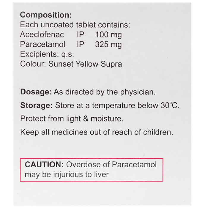 Aceclofenac (100mg) + Paracetamol (325mg):<packagingdetail>:Strip: