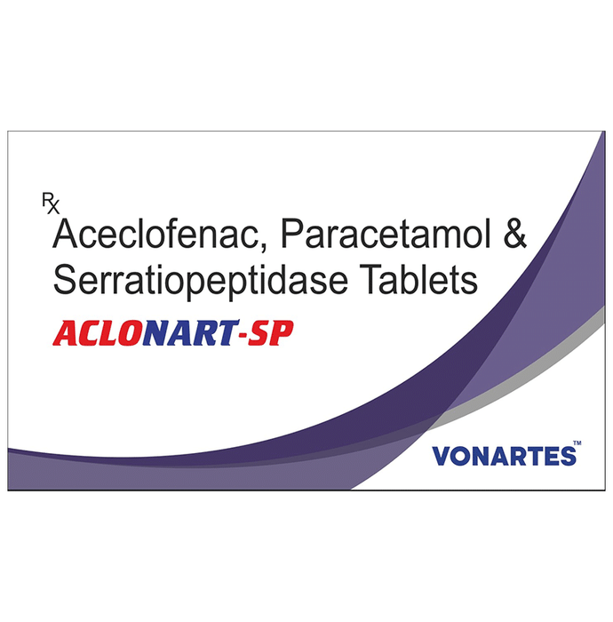 What is Aclonart-SP Tablet?::: It is a combination of three medicines: Aceclofenac, Paracetamol, and Serratiopeptidase. This medication helps in relieving pain and inflammation. It works by lowering the levels of chemical substances in the body that cause pain and inflammation.| Is it safe to take Aclonart-SP Tablet?::: It is safe to take this medicine for most of the patients. However, in some patients, it may cause unwanted side effects like nausea, vomiting, stomach pain, heartburn, and diarrhea. If you experience any persistent problem due to the medication, inform your doctor as soon as possible.| Can I stop taking Aclonart-SP Tablet when my pain is relieved?::: This medicine is usually used for the short term and can be discontinued when your pain is relieved. However, continued taking it if your doctor has advised you to do so.| Can Aclonart-SP Tablet cause nausea and vomiting?::: Yes, the use of this medicine can cause nausea and vomiting. In case you experience nausea while taking this medicine, take it with milk, food, or with antacids. Avoid taking fatty or fried foods along with this medication. In case of vomiting, drink plenty of water or other fluids by taking small frequent sips. Talk to your doctor if vomiting persists and you notice signs of dehydration, like dark colored and strong-smelling urine and a low frequency of urination. Do not take any other medicines without speaking to your doctor.| Can Aclonart-SP Tablet cause dizziness?::: Yes, the use of this medicine can cause dizziness (feeling faint, weak, unsteady or lightheaded) in some patients. If you feel dizzy or lightheaded, it is better to rest for sometime and resume once you feel better.| Are there any specific contraindications associated with taking Aclonart-SP Tablet?::: The use of this medicine is considered harmful for patients with known allergy to any of the components or excipients of this medicine or in patients with known allergy to other painkillers (NSAIDs). Its use should preferably be avoided in patients with a history of stomach ulcers or in patients with active, recurrent stomach ulcers/bleeding. It should also be avoided in patients with a history of heart failure, high blood pressure, and liver or kidney disease.| Can I take Aclonart-SP Tablet with vitamin B-complex?::: Yes, this medicine can be taken with vitamin B-complex preparations. While it helps to relieve pain, vitamin B-complex can help to correct the vitamin deficiency that might be causing your symptoms.| Can the use of Aclonart-SP Tablet cause damage to kidneys?::: Yes, long-term use of this medicine can cause damage to the kidneys. Normal kidneys produce a chemical called prostaglandins that protect them from damage. The use of painkillers lowers the levels of prostaglandins in the body, which leads to kidney damage on long-term use. The use of painkillers is not recommended in patients with underlying kidney disease.| Can I take a higher dose of Aclonart-SP Tablet than recommended?::: No, taking a higher than recommended dose can lead to increased chances of side effects. If you are experiencing increased severity of pain or the pain is not relieved by the recommended doses, please consult your doctor for re-evaluation.| What are the instructions for storage and disposal of Aclonart-SP Tablet?::: Keep this medicine in the packet or the container it came in, tightly closed. Store it according to the instructions mentioned on the pack or label. Dispose of the unused medicine. Make sure it is not consumed by pets, children and other people.: