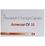 Acmerose-CV 10 Capsule is a combination of two medicines used to prevent heart attack, angina, and stroke. This medicine reduces the ‘__’bad’__’ cholesterol (LDL) and triglycerides (fats) levels. Moreover, it also decreases the formation of harmful blood clots. Acmerose-CV 10 Capsule should be taken with or without food. You should take it regularly at evenly spaced intervals as per the schedule prescribed by your doctor. Taking it at the same time every day will help you remember to take it. The dose and duration of treatment will depend on what you are being treated for. Do not stop taking it until you have finished the complete course, even when you feel better. Lifestyle changes like low-fat diet, exercise and not smoking may help this medicine to work better.Stomach pain, diarrhea, indigestion, constipation, and headache are some common side effects of this medicine. This medicine increases your risk of bleeding, so it is important to be careful while shaving, cutting nails, using sharp objects, or engaging in contact sports (e.g., football, wrestling). Let your doctor know if you notice yellowing of skin, muscle pain or dark urine. You may be asked for regular monitoring of liver function while taking this medicine.Before taking this medicine, tell your doctor if you have liver or kidney disease or you are suffering from bleeding disorder. You must tell your doctor if you are pregnant, planning pregnancy or breastfeeding. You should also let your healthcare team know all other medicines you are taking as they may affect, or be affected by this medicine.