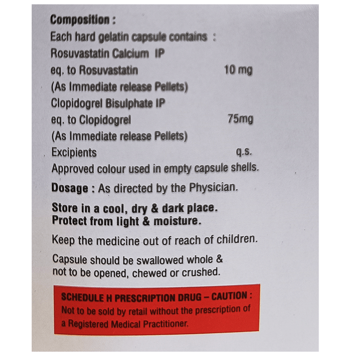 Rosuvastatin (10mg) + Clopidogrel (75mg):<packagingdetail>:Strip: