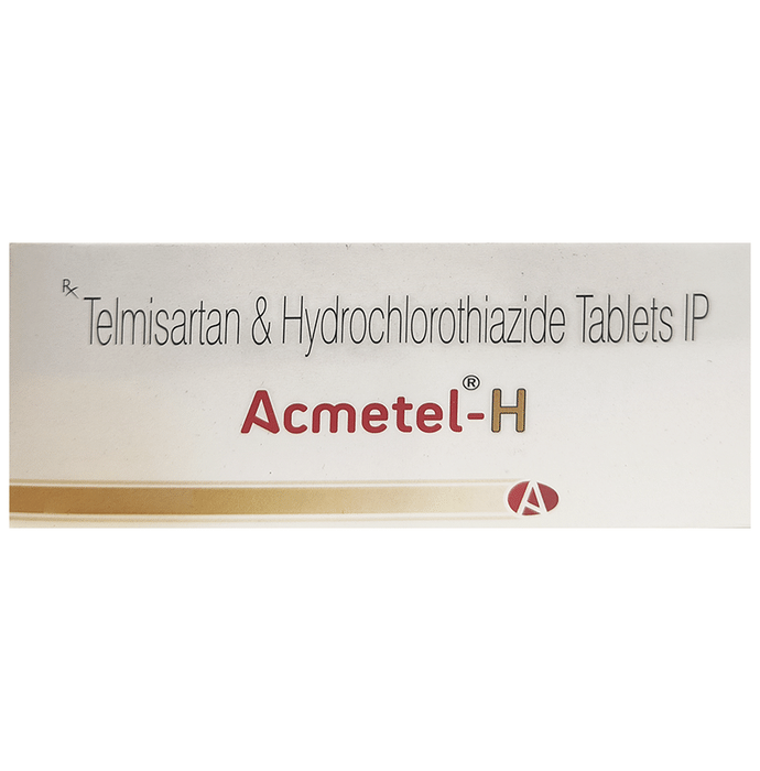 Acmetel-H Tablet contains two medicines, both of which help to control high blood pressure. It is generally used when one medicine alone is not controlling the blood pressure effectively. Lowering blood pressure helps to reduce your risk of having a heart attack or a stroke in the future. You can take Acmetel-H Tablet with or without food. The dose will depend on your condition and how you respond to the medicine. Try to take it at the same time each day. It’s important to keep taking this medicine until your doctor tells you not to. It contains a diuretic (water pill) and will make you urinate more, so it is best to avoid taking this medicine within four hours of going to bed. Use this medicine regularly even if you feel better to get the most from it. High blood pressure does not usually have symptoms and if you stop taking it your risk of heart attack or stroke may increase.The most common side effect is dizziness. Other side effects include feeling tired, nausea, shortness of breath, and changes to your heartbeat. Frequent urination is not a side effect of this medicine. It is the purpose of this medicine as frequent urination helps control your blood pressure. You may experience other possible side effects, but most are rare. Make sure you read the leaflet that comes with your medicines and tell your doctor if you are bothered by side effects or they do not go away. It may be possible to adjust your dose or try a different medicine.Do not use potassium supplements or salt substitutes unless your doctor has told you to. This medicine is not recommended during pregnancy or while breastfeeding. You should ask your doctor before taking it if you have kidney or liver disease, heart trouble or diabetes. Drinking alcohol can further lower your blood pressure and may cause side effects.