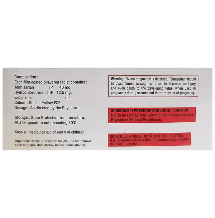 Telmisartan (40mg) + Hydrochlorothiazide (12.5mg):<packagingdetail>:Strip: