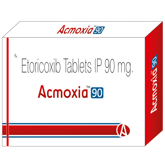 In Pain relief Acmoxia 90 Tablet is used for short-term relief of pain, inflammation, and swelling in conditions that affect joints and muscles. It works by blocking chemical messengers in the brain that tell us we have pain. It can help relieve pain in conditions like rheumatoid arthritis and osteoarthritis or even after a dental (tooth-related) surgery.u003cbr>u003cbr>Take it as it is prescribed to get the most benefit. Do not take more or for longer than needed as that can be dangerous. In general, you should take the lowest dose that works, for the shortest possible time. This will help you to go about your daily activities more easily and have a better, more active, quality of life.