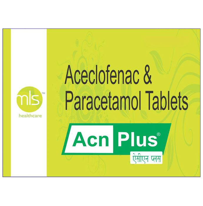 What is Acn Plus Tablet?::: Acn Plus Tablet is a combination of two medicines: Aceclofenac and Paracetamol. This medication helps in relieving pain and inflammation. It works by lowering the levels of chemical substances in the body that cause pain and inflammation.| Is it safe to use Acn Plus Tablet?::: Acn Plus Tablet is safe for most of the patients. However, in some patients it may cause some unwanted common side effects like nausea, vomiting, stomach pain, heartburn, diarrhea and other uncommon and rare side effects.| Can I stop taking Acn Plus Tablet when my pain is relieved?::: If you are using the medication for a condition associated with long-term pain then Acn Plus Tablet should be continued for as long as advised by your physician. It can be discontinued if you are using it for short-term pain relief.| Can the use of Acn Plus Tablet cause nausea and vomiting?::: Yes, the use of Acn Plus Tablet can cause nausea and vomiting. Taking it with milk, food or with antacids can prevent nausea. Avoid taking fatty or fried foods along with this medication. In case of vomiting drink plenty of water or other fluids by taking small frequent sips. Talk to your doctor if vomiting persists and you notice signs of dehydration, like dark colored and strong-smelling urine and a low frequency of urination. Do not take any other medicine without speaking to your doctor.| Can the use of Acn Plus Tablet cause dizziness?::: Yes, the use of Acn Plus Tablet can cause dizziness (feeling faint, weak, unsteady or lightheaded) in some patients. If you feel dizzy or lightheaded, it is better to rest for sometime and resume once you feel better.| Are there any specific contraindications associated with the use of Acn Plus Tablet?::: The use of Acn Plus Tablet is considered to be harmful for patients with known allergy to any of the components or excipients of this medicine or in patients with known allergy to other painkillers (NSAIDs). It should preferably be avoided in patients with a history of stomach ulcers or in patients with active, recurrent stomach ulcer/bleeding. It should also be avoided in patients with a history of heart failure, high blood pressure, and liver or kidney disease.| Can Acn Plus Tablet be taken with vitamin B-complex?::: Yes, Acn Plus Tablet can be taken with vitamin B-complex preparations. While Acn Plus Tablet helps to relieve pain, vitamin B-complex can help to correct the vitamin deficiency that might be causing the underlying painful condition.| Is Acn Plus Tablet helpful in relieving stomach pain?::: No, Acn Plus Tablet preferably should not be taken for stomach pain without consulting a physician. This drug can increase stomach acid secretion which may aggravate an unknown underlying condition.| Can the use of Acn Plus Tablet cause damage to kidneys?::: Yes, the long-term use of Acn Plus Tablet can cause damage to the kidneys. Normal kidneys produce a chemical messenger called prostaglandins that protects them from damage. Use of painkillers lowers the levels of prostaglandins in the body which leads to kidney damage on long-term use. Use of painkillers is not recommended to patients with underlying kidney disease.| Is it safe to take a higher dose of Acn Plus Tablet than recommended?::: No, taking higher than the recommended dose of Acn Plus Tablet can lead to increased chances of side effects like nausea, vomiting, heartburn, indigestion, diarrhea and can also damage your kidneys on long-term use. If you are experiencing increased severity of pain or if the pain is not relieved by the recommended doses of this medicine, please consult your doctor for re-evaluation.| What are the instructions for storage and disposal of Acn Plus Tablet?::: Keep this medicine in the container or the pack it came in, tightly closed. Store it according to the instructions mentioned on the pack or label. Dispose of the unused medicine. Make sure it is not consumed by pets, children and other people.| How long does it take for Acn Plus Tablet to show results?::: The effect of Acn Plus Tablet can be seen within 1.5 to 3 hours of oral administration of the medicine and the time taken to show the desired effects may vary with every individual patient.| What is the dosage of Acn Plus Tablet?::: You may take one tablet of Acn Plus Tablet twice daily or as prescribed by your doctor. Always follow your doctor’s instructions while taking this medicine.| Can I take Acn Plus Tablet along with other painkiller tablets?::: No, it is not recommended to take Acn Plus Tablet with other painkiller medicines without consulting your doctor since it may cause unwanted side effects like stomach pain or ulcers.| Can Acn Plus Tablet be given to children?::: No, Acn Plus Tablet is not recommended for use in children under the age of 18 years.: