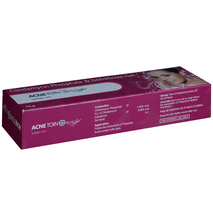 Acnetoin Plus Gel is a combination medicine that is used to treats acne. It minimizes excessive oil production, thus reduces inflammation. It also prevents the growth of the microorganisms that cause acne. This also helps to prevent pimples, blackheads, and whiteheads on the skin. Acnetoin Plus Gel is only meant for external use and should be used as advised by your doctor. A thin layer of the medicine should be applied only to the affected areas of the skin with clean and dry hands. Wash your hands before and after applying the medicine. If it gets into your eyes, nose, mouth, or vagina rinse with water. It may take several days to weeks for your symptoms to improve, but you should keep using this medicine regularly. The course of the treatment should be completed to ensure better efficacy of the medicine. If your condition does not improve or gets worse, you should talk to your doctor.This is usually a safe medicine, however, it may cause dryness, peeling, redness, and burning sensation at the application site. These side effects are usually mild and self-limiting. Most of these side effects can be prevented by using a skin moisturizer and drinking plenty of water. Serious side effects are rare. You must consult the doctor if you experience any allergic reaction (rashes, itching, swelling, shortness of breath, etc.).Before using this medicine, it is important to tell your doctor if you are taking or have recently taken any other medicines for the same disease or other diseases. Pregnant and breastfeeding women should use this medicine with proper consultation and caution. If you are a known allergic to the medicine, you must refrain from using this medicine and consult your doctor. During the course of the treatment, do not touch, prick or scratch the infected skin areas as this may worsen or spread the acne. Avoid unnecessary sun exposure and use a sunscreen before stepping out in the sun. It is also advised, not to receive any cosmetic procedures without asking your doctor.