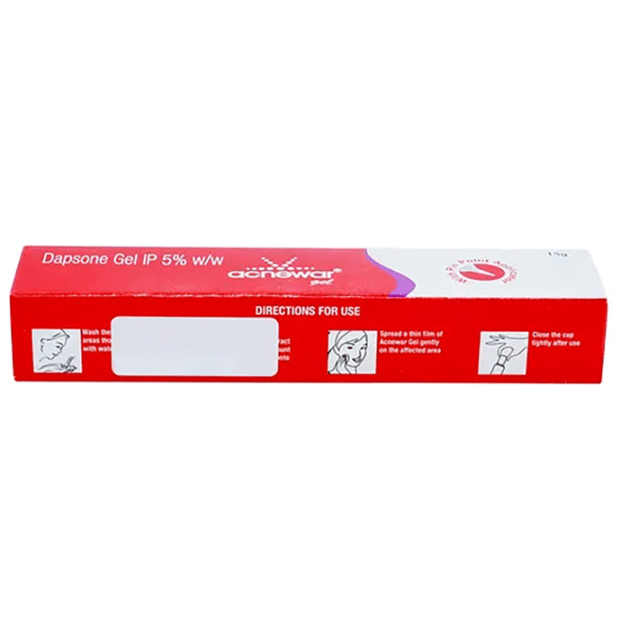 Acnewar Gel is used to treat acne. It helps reduce redness and swelling associated with acne (commonly known as pimples). Acnewar Gel is for external use only. You should use it in the dose and duration as advised by your doctor. The affected area should be clean and dry before application of the ointment. You must wash your hands thoroughly before and after applying this medicine. To avoid relapse, continue the use of this medicine even if symptoms begin to clear up.Some common side effects include oily skin, dry skin, and skin exfoliation (skin peeling). It may also cause skin irritation, redness, or itching at the site of application. Please consult your doctor if these side effects persist for a longer duration. Avoid getting it into your eyes, nose, or mouth. If accidental exposure occurs, wash your eyes with water, and seek immediate medical attention.