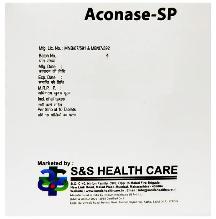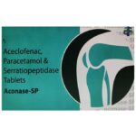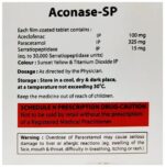 What is Aconase-SP Tablet?::: It is a combination of three medicines: Aceclofenac, Paracetamol, and Serratiopeptidase. This medication helps in relieving pain and inflammation. It works by lowering the levels of chemical substances in the body that cause pain and inflammation.| Is it safe to take Aconase-SP Tablet?::: It is safe to take this medicine for most of the patients. However, in some patients, it may cause unwanted side effects like nausea, vomiting, stomach pain, heartburn, and diarrhea. If you experience any persistent problem due to the medication, inform your doctor as soon as possible.| Can I stop taking Aconase-SP Tablet when my pain is relieved?::: This medicine is usually used for the short term and can be discontinued when your pain is relieved. However, continued taking it if your doctor has advised you to do so.| Can Aconase-SP Tablet cause nausea and vomiting?::: Yes, the use of this medicine can cause nausea and vomiting. In case you experience nausea while taking this medicine, take it with milk, food, or with antacids. Avoid taking fatty or fried foods along with this medication. In case of vomiting, drink plenty of water or other fluids by taking small frequent sips. Talk to your doctor if vomiting persists and you notice signs of dehydration, like dark colored and strong-smelling urine and a low frequency of urination. Do not take any other medicines without speaking to your doctor.| Can Aconase-SP Tablet cause dizziness?::: Yes, the use of this medicine can cause dizziness (feeling faint, weak, unsteady or lightheaded) in some patients. If you feel dizzy or lightheaded, it is better to rest for sometime and resume once you feel better.| Are there any specific contraindications associated with taking Aconase-SP Tablet?::: The use of this medicine is considered harmful for patients with known allergy to any of the components or excipients of this medicine or in patients with known allergy to other painkillers (NSAIDs). Its use should preferably be avoided in patients with a history of stomach ulcers or in patients with active, recurrent stomach ulcers/bleeding. It should also be avoided in patients with a history of heart failure, high blood pressure, and liver or kidney disease.| Can I take Aconase-SP Tablet with vitamin B-complex?::: Yes, this medicine can be taken with vitamin B-complex preparations. While it helps to relieve pain, vitamin B-complex can help to correct the vitamin deficiency that might be causing your symptoms.| Can the use of Aconase-SP Tablet cause damage to kidneys?::: Yes, long-term use of this medicine can cause damage to the kidneys. Normal kidneys produce a chemical called prostaglandins that protect them from damage. The use of painkillers lowers the levels of prostaglandins in the body, which leads to kidney damage on long-term use. The use of painkillers is not recommended in patients with underlying kidney disease.| Can I take a higher dose of Aconase-SP Tablet than recommended?::: No, taking a higher than recommended dose can lead to increased chances of side effects. If you are experiencing increased severity of pain or the pain is not relieved by the recommended doses, please consult your doctor for re-evaluation.| What are the instructions for storage and disposal of Aconase-SP Tablet?::: Keep this medicine in the packet or the container it came in, tightly closed. Store it according to the instructions mentioned on the pack or label. Dispose of the unused medicine. Make sure it is not consumed by pets, children and other people.:
