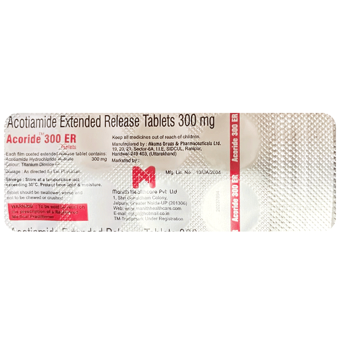 What is Acoride 300 ER Tablet used for?::: Acoride 300 ER Tablet is used in the treatment of functional dyspepsia. It helps to relieve the symptoms like bloating after a meal, pain/discomfort in the upper abdomen and early satiety (feeling of fullness in a short span of time after having only little food).| When should I take Acoride 300 ER Tablet?::: Acoride 300 ER Tablet should be taken before meals. Always complete the prescribed course of treatment as advised by your doctor even if you start to feel better.| Is Acoride 300 ER Tablet effective?::: Acoride 300 ER Tablet is effective if used in the dose and duration advised by your doctor. Do not stop taking it even if you see improvement in your condition. If you stop using Acoride 300 ER Tablet too early, the symptoms may return or worsen.| Can I stop taking Acoride 300 ER Tablet when I feel better?::: No, do not stop taking Acoride 300 ER Tablet without consulting your doctor even if you are feeling better. Your symptoms may improve before the condition is completely cured. Therefore, for better and complete treatment, it is advised to continue your treatment for the prescribed duration.| Is Acoride 300 ER Tablet safe?::: Acoride 300 ER Tablet is safe if used in the dose and duration advised by your doctor. Take it exactly as directed and do not skip any dose. Follow your doctor’s instructions carefully and let your doctor know if any of the side effects bother you.| Can dyspepsia be cured?::: No, functional dyspepsia cannot be cured completely. But, the symptoms of functional dyspepsia such as bloating after a meal, pain/discomfort in the upper abdomen and early satiety (feeling of fullness in a short span of time after having only little food), can be effectively managed with medicines as well as a few lifestyle changes. Practise yoga or meditation or take up a hobby. Ensure that you have a sound sleep every night as this also reduces your stress and hence helps in keeping your symptoms well-controlled. Try to eat smaller, frequent meals and avoid eating late at night. There should be a gap of at least 3 to 4 hours between dinner and going to bed at night. Take more fiber-rich foods such as fresh fruits, vegetables and avoid spicy or oily foods. Reducing weight can also help if you are obese. These simple life-hacks can help you manage your condition a lot.: