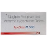 What is Acosita-M 500 Tablet?::: Acosita-M 500 Tablet is a combination of two medicines: Sitagliptin and Metformin. This medicine is used in the treatment of type 2 diabetes mellitus. It improves blood glucose levels in adults when taken along with proper diet and regular exercise. Metformin lowers glucose production in the liver and improves insulin sensitivity. Sitagliptin inhibits the enzyme DPP4 and increases insulin release from the pancreas. This combination is not indicated for the patients below 18 years of age.| What are the possible side effects of Acosita-M 500 Tablet?::: The use of Acosita-M 500 Tablet is associated with common side effects like hypoglycemia (low blood sugar level), altered taste, nausea, stomach pain, diarrhea, headache, and upper respiratory tract infection. Its use can also lead to serious but rare side effects like lactic acidosis. On long-term use, it can also lead to Vitamin B12 deficiency.| Are there any specific conditions in which Acosita-M 500 Tablet should not be taken?::: The use of Acosita-M 500 Tablet should be avoided in patients with known allergies to any of the components or excipients of this medicine. The use of this medicine should be avoided in patients with severe kidney impairment, liver impairment, congestive heart failure, lactic acidosis, or diabetic ketoacidosis.| Is it safe to take alcohol while I am taking Acosita-M 500 Tablet?::: No, it is not safe to consume alcohol along with Acosita-M 500 Tablet, as it can increase the chances of lactic acidosis.| Can the use of Acosita-M 500 Tablet lead to lactic acidosis?::: Yes, the use of Acosita-M 500 Tablet can lead to lactic acidosis. It is a medical emergency caused by the increased levels of lactic acid in the blood. It is also known as MALA (Metformin-associated lactic acidosis). It is a rare side effect associated with the use of metformin. Therefore, it is avoided in patients with underlying kidney disease, old age patients, or who take large amounts of alcohol. Symptoms of lactic acidosis may include muscle pain or weakness, dizziness, tiredness, feeling of cold in arms and legs, difficulty in breathing, nausea, vomiting, stomach pain, or slow heart rate. If you have these symptoms, stop taking Sitagliptin + Metformin and immediately consult your doctor.| Can the use of Acosita-M 500 Tablet lead to Vitamin B12 deficiency?::: Yes, using Acosita-M 500 Tablet can cause Vitamin B12 deficiency in the long term. It interferes with the absorption of Vitamin B12 in the stomach. If untreated, it may cause anemia and nerve problems, as a result of which the patient can feel a tingling sensation and numbness in hands and feet, weakness, urinary problems, change in mental status, and difficulty maintaining balance (ataxia). To avoid such problems, some researchers suggest an intake of vitamin B12 from outside sources at least once every year.| What are the instructions for storage and disposal of Acosita-M 500 Tablet?::: Keep this medicine tightly closed in the container or pack it came in. Store it according to the instructions on the pack or label. Dispose of the unused medicine. Make sure it is not consumed by pets, children, or other people.: