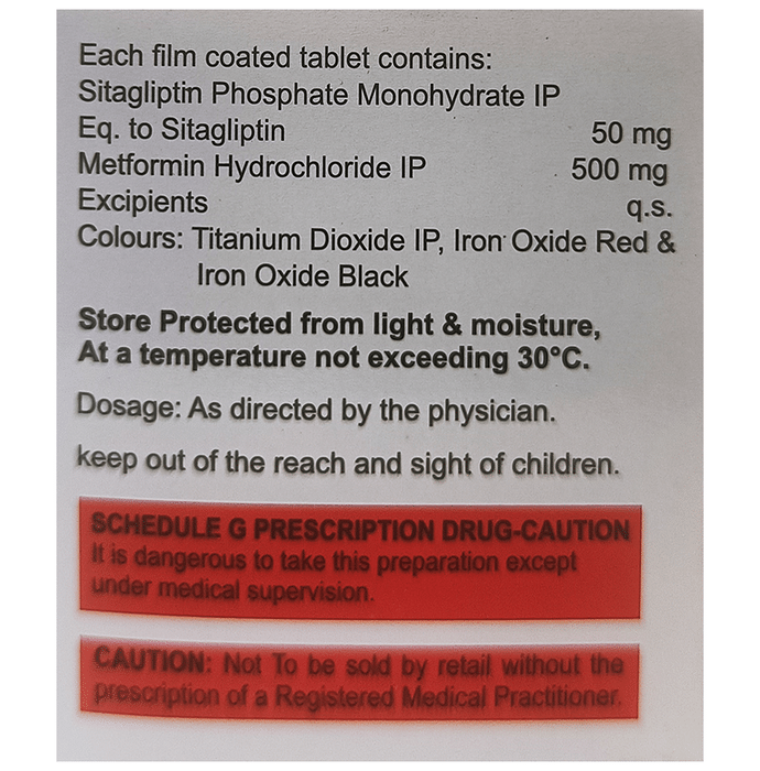 Sitagliptin (50mg) + Metformin (500mg):<packagingdetail>:Strip: