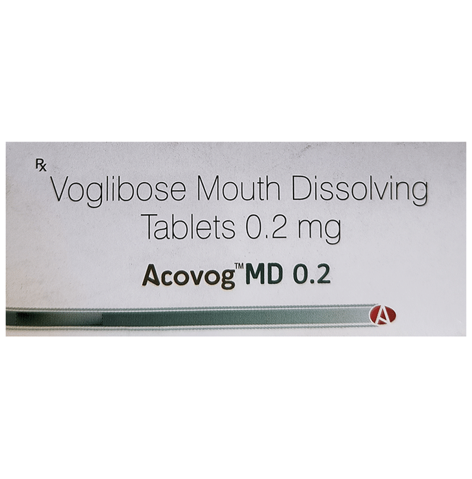Does Acovog MD 0.2 Tablet cause weight loss?::: There is evidence that normal doses of Acovog MD 0.2 Tablet do not cause significant weight loss. However, very high doses of this medicine can affect the absorption of food, thereby causing weight loss. Do not take this medication for weight loss as it is not approved for the treatment of obesity. Do consult your doctor before starting this medication.| How should you take Acovog MD 0.2 Tablet?::: Acovog MD 0.2 Tablet is usually prescribed to be taken orally three times daily immediately before each meal. Acovog MD 0.2 Tablet may be given along with a controlled diet. However, in case Acovog MD 0.2 Tablet does not work alone, it may be given along with a proper diet and other antidiabetic medicines. Your doctor may further increase your doses if the given doses do not provide sufficient control over the blood sugar levels. Do not take this medication by yourself and consult your doctor before starting this medication.:
