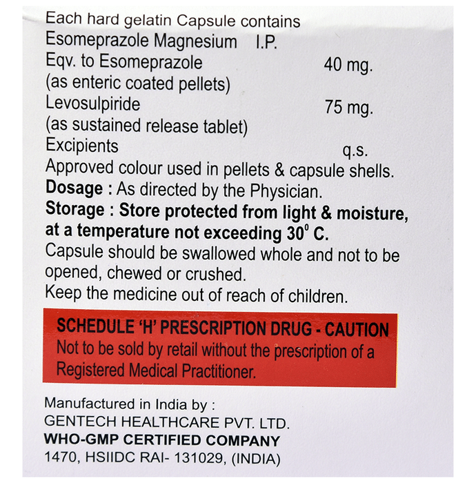 Levosulpiride (75mg) + Esomeprazole (40mg):<packagingdetail>:Strip: